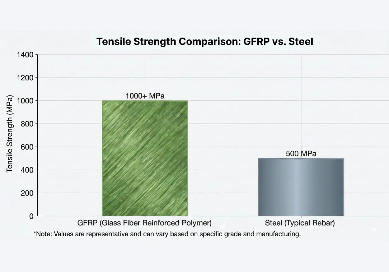 Strength is the most critical requirement for any reinforced concrete structure. If the reinforcement fails, the concrete fails. For over a century, steel has been used because it is strong and readily available. But there is a major weakness in steel that cannot be ignored: